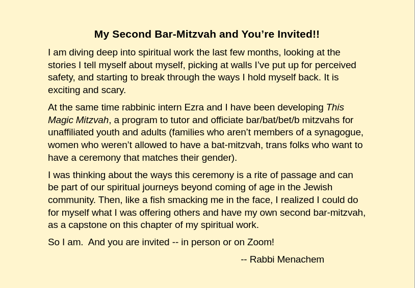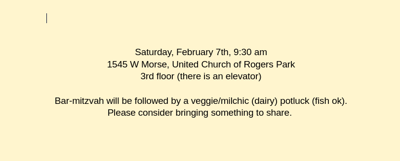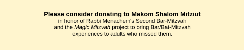 You can also send a check to: Makom Shalom Mitziut, PO Box 10015, Chicago, IL 60610-0015.